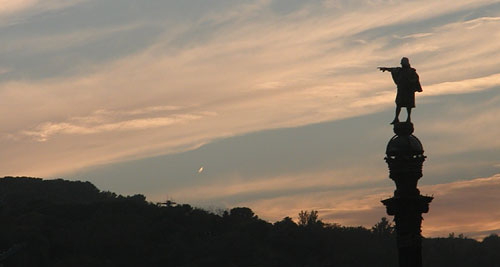 operei din Barcelona , si se sfarseste in port , unde o statuie a lui Cristofor Columb care indica spre mare.