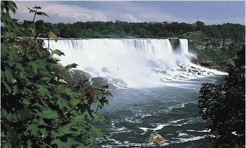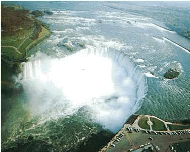 Pana ajunge sa curga peste stratul de roca, partea americana a raului are doar 1 metru adancime, spre deosebire de cea canadiana care are aproximativ 6 metri adancime. In fiecare minut aproape 340000 de metri cubi de apa cade peste stancile cascadei Niagara. Din cauza caderii puternice de apa se formeaza o ceata care la randul ei cu ajutorul soarelui da nastere la multe curcubee. Din acest motiv indienii Iroquois au numit cascada Cataracta Niagara (figura 3).