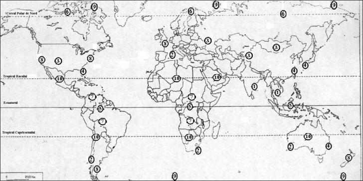 b. Regiuni caracteristice- N Europei, N Americii de N, N Asiei, S Americii de S, insulele din jurul Antarcticii