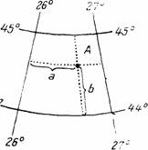 Punctul A din fig. 1 este situat intre paralelele de 44 si 45 si meridianele