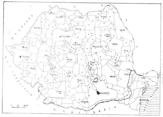 I. Ianos (1987) a realizat o harta cu aria teoretica de influenta a oraselor Romaniei, pe baza formulei Reilly-Converse. Va rog sa remarcati principalele diferente fata de harta zonelor de influenta calculate pe baza poligoanelor lui Thiessen: