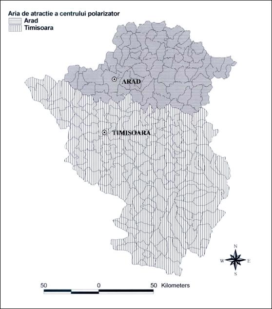 Problema. Stabiliti care este zona de influenta teoretica a municipiului Timisoara, urmand metoda descrisa mai sus.