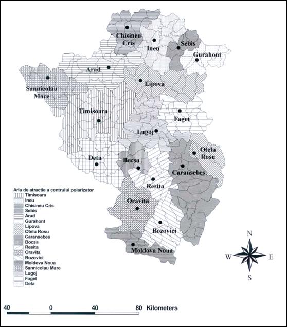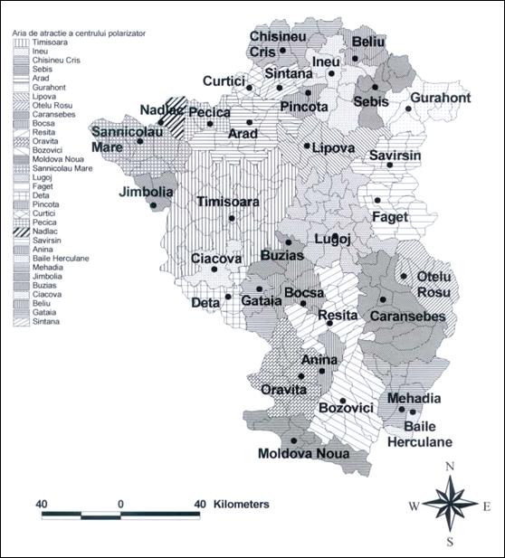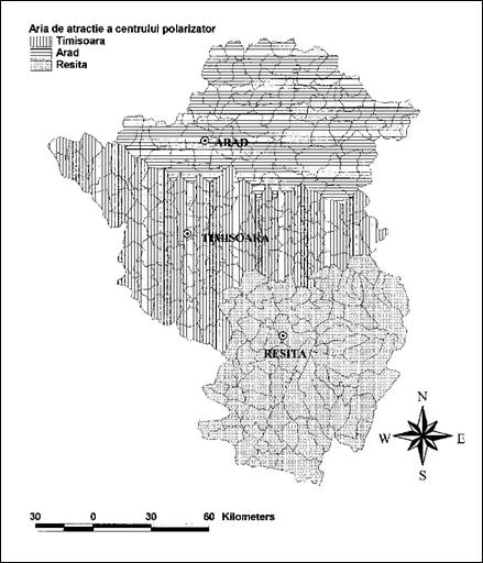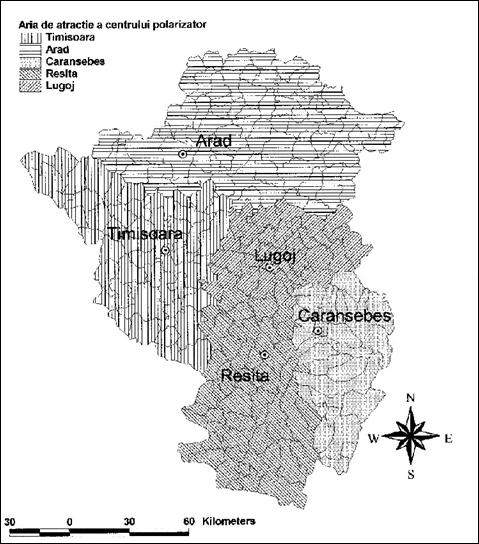 Ceea ce iese in evidenta este prezenta competitiei intre orase la toate nivelele; astfel, Timisoara nu are nici un concurent la nivelul 1 (cel putin nu in regiunea analizata), insa are un concurent la nivelul 2 (Arad), doi la nivelul 3 (Arad si Resita), inca doi la urmatorul nivel s.a.m.d, astfel incat la nivelul 6, Timisoara intra in competitie cu orase mici precum Jimbolia, Recas sau Buzias, si chiar localitati rurale precum Ciacova, iar la nivelul 7 intervin si alte localitati rurale, situate in imediata sa apropiere (Carpinis, Ortisoara, Biled).
