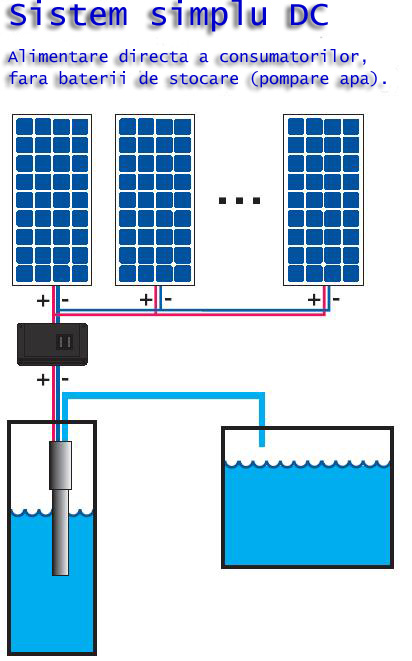 Configuratia acestui tip de sistem este minima. Lipsa bateriilor pentru stocarea energiei electrice reduce semnificativ pretul de cost. Alimentarea consumatorilor se face direct in curent continuu fara controlul exact al tensiunii de alimentare.