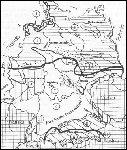 morenaice 4. Depozite loessoide 5. Masive vechi 6. Bazine de sedimentare (al Germaniei de