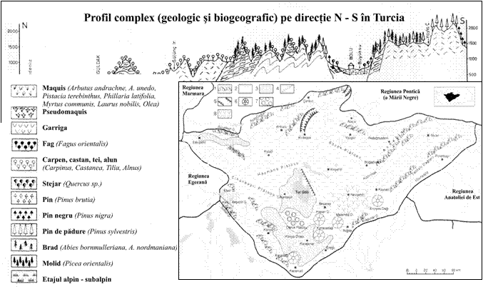 Pe versantii dinspre Marea Neagra (Ibrahim Atalay, Kenan Mortan, 2003) se dezvolta padurile de fag si carpen, apoi de fag cu rasinoase pana la 900 m, urmandu-le la altitudinile mai mari padurile pure de rasinoase.