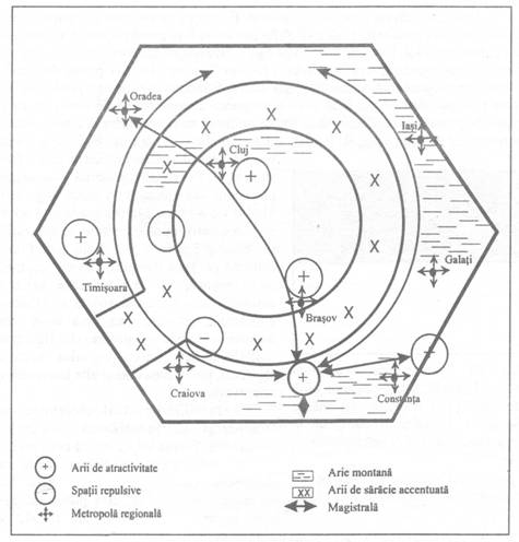 Fig. 7. Modelul de organizare a spatiului geografic romanesc. Sursa: I. Ianos (2000)