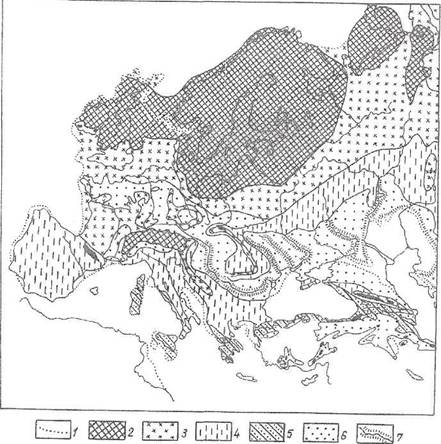 Fig. 85 - Vegetatia din Europa in timpul interglaciarului Mikulino (timpul maximei incalziri, faza extrema a optimului climatic) (dupa V.P. Gritchuk, 1973)