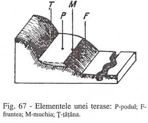 Elementele morfologice ale unei terase sunt urmatoarele (fig. 67)