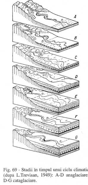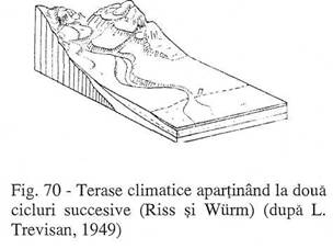 aportul materialelor de pe versanti, iar, ca urmare, raurile se adanceau si isi taiau fruntile de terasa (fig. 69, 70).
