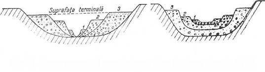 Fig. 73 - Terase rezemate si terase imbucate (dupa Gr. Posea si colab., 1970) Tipuri de terasa