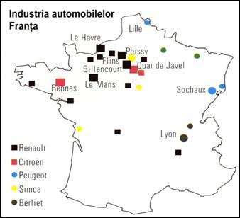 Regiunile de Est si Nord - Est. Este vorba de Lorena si Alsacia, o puternica arie industriala, cu o pondere sustinuta a industriei extractive (carbuni, fier, saruri) si a celei prelucratoare (siderurgia, chimica si petrochimica a industriei constructiilor mecanice). In lungul celor doua axe industriale Moselle si Meurthe, adevarate bulevarde industriale, se gasesc puternice centre urban-industriale, cum sunt Nancy, Metz, Thionville pe Moselle si Saint-Die, Raon l'Etope, Luneville pe Meurthe. De altfel Nancy, Metz si Thionville formeaza un aliniament urban tripolar, cu mare raza de influenta, orasul Nancy avand functie de metropola de echilibru.