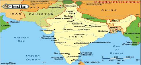 Capitala Indiei este New Delhi. Cele mai impotrate otase porturi sunt: Bombay/Mumbai, Calcutta, Delhi, Mardras, Hyderabad, Bangalore, Ahmedabad, Kampur, Nagpur, Lucknow, Poona/Puna, etc.