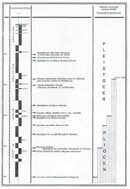 Fig. 1 - Limita Pliocen-Pleistocen (dupa H. de Lumley, 1976)