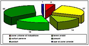 concordanta cu relieful.Conform Corine Land Cover (CLC 2000), ponderea cea mai mare o ocupa suprafata aferenta padurilor, urmata de terenuri arabile si apoi de arii agricole eterogene. De remarcat e faptul ca zonele urbane si industriale ocupa si ele o suprafata de 5 % din totalul bazinului hidrografic Olt (fig. 1).