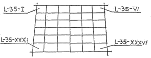 In acest caz vor fi necesare 9x144=1296 foi de hartie iar hartile astfel obtinute vor fi numite K-34-1 pana la M-36-144 (fig. 3.16). Hartile la scara 1:50.000 se obtin prin impartirea suprafetelor corespunzatoare fiecarui trapez reprezentat la scara 1:100.000 in 4 parti egale notate A, B, C, D. in acest caz trapezul terestru L-35, de exemplu, va fi reprezentat la scara 1:50.000 pe 144x4=576 foi de hartie.