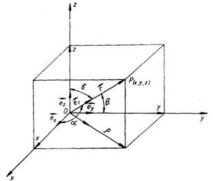 Spatiul constituie o notiune filozofica, el fiind 'locul' in care se desfasoara fenomenele fizice. Spatiul fizic conventional este spatiul euclidian, care este tridimensional. In spatiul tridimensional sunt suficiente trei numere care sa descrie pozitia unui corp in spatiu. Aceste numere sunt determinate prin alegerea Sistemului de referinta fata de care se raporteaza corpul. Sistemul de referinta este format dintr- un sistem de trei axe perpendiculare intre ele in spatiul tridimensinal si un ceasornic, in aa fel incat sa se poata determina distante si durate de timp. Axele sistemului de referinta au cate un vector unitate, numit versor, de modul unitate, si a carui directie da sensul pozitiv al axei respective. In fig.1.1 se prezinta un sistem de referinta, in care axele de coordonate sunt Ox, Oy si Oz. Versorii axelor sunt vectorii