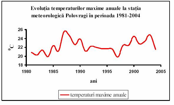 Temperaturile maxime au inregistrat oscilatii, cea mai mare valoare inregistrandu-se in anul 2000 (8,930C), iar cea mai mica in anul 1996 (6,60C).