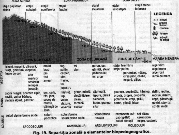 Elementele biopedogeografice sunt: vegetatia, fauna si solurile