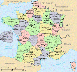 Cele 22 de regiuni si 96 de departamente ale Frantei metropolitane.