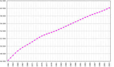 Evolutia demografica intre 1961 si 2003. Populatia in mii de locuitori.