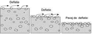 O mare parte a deserturilor este acoperita de asa-numitul pavaj de deflatie, format din elemente de roca mai grosiere care depasesc competenta vantului si raman astfel pe loc (fig. 1).