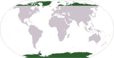 In regiunea polara nordica se afla numeroase asezari omenesti, dar, cu exceptia statiunilor stiintifice, in Antarctica nu exista asezari omenesti permanente, datorita temperaturilor mult mai scazute precum si a izolarii geografice a continentului antarctic fata de celelalte continente.