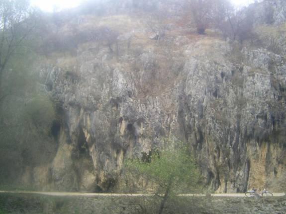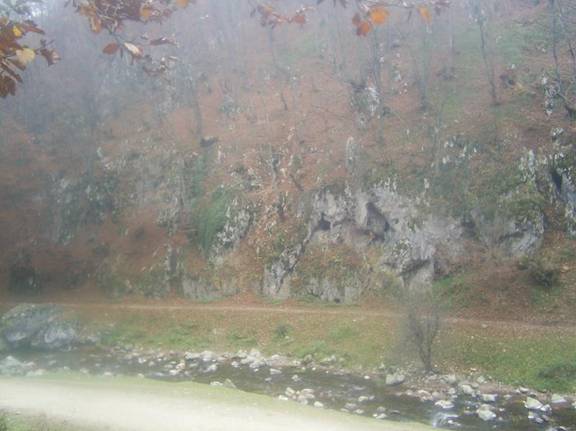 Deasupra, la cativa metri, abia mai distingem o fasie de lumina. Poteca a disparut si, pentru a merge mai departe, sarim din piatra in piatra ; uneori, pentru ca nu avem incotro, trebuie sa o luam direct prin apa rece. Foarte des, suspendate la diverse inaltimi, gaurile negre ale unor pesteri ne fac sa visam la lume tainica a adincurilor. Am intrat intr-un sector de chei. Dupa cateva sute de metri, pe stanga, abruptul se mai domoleste si de sub niste bolovani tasneste un suvoi puternic de apa. Este un izbuc, un izvor carstic. De la izbuc in sus, distingem urmele unei albii secate. Urcand pe aceasta, cu putin efort, ajungem pe omica creasta, unde decorul ce ni se infatiseaza ne poate contraria, dar in acelasi timp ne poate starni curiozitatea : covorul de iarba este punctat pe intinse suprafete de lapizuri-forme rezultate ca urmare a eroziunii calcarului de catre apele de siroire. De diferite dimensiuni, mai frecvent de ordinul zecilor de centrimetri, acestea pot fi : rotunjite, ascutite, cavernoase, de tipul rigolelor sau canelurilor etc.