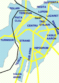 Centru;Lupeni ; Trei Stejari ; Sub Arini ; Vasile Aaron ; Hipodrom I, II, III, IV ; Valea Aurie ; Tilisca ; Strand I, II ; Turnisor Piata Cluj ; Tiglari ;
