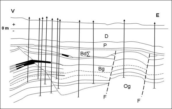 Fig.2 Sectiune geologica prin strucutra Alunu