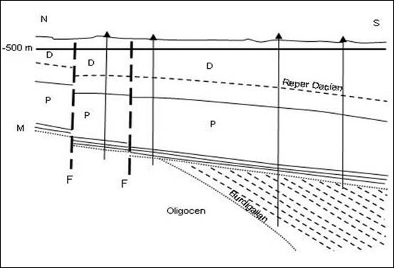 Rezervoarele din baza Pliocenului sunt protejate de seria marnoasa a meotianului precum si de Pontianul exclusiv pelitic.