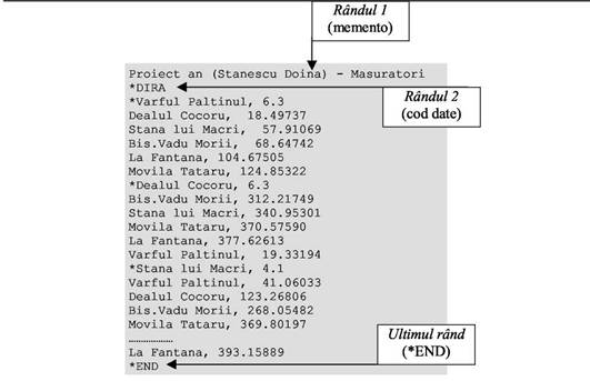 Un fisier text nu poate utiliza decat una dintre posibilitatile de separare mentionate mai sus.Daca pe un rand trebuie sa apara o valoare numerica nederminata (necunoscuta sau care nu a fost masurata), pe pozitia aceseia se introduce -1.