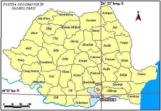 Matematic este traversata de paralela 4411' latitudine nordica si de meridianul 2622' longitudine estica.