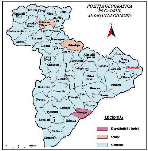 Localitatea studiata, se afla din punct de vedere fizico-geografic in nordul Campiei Burnasului estic, (in partea de sud sus-est) in centrul Campiei Romane, la o departare de 40 km de Bucuresti si in nord-estul judetului Giurgiu.