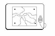 Procesul de digitizare consta in transformarea datelor grafice din format analogic in format digital. Aceasta actiune presupune existenta unui digitizor conectat la un calculator si prevazut cu un soft specializat. Digitizorul sau tableta grafica (figura 3) este o suprafata plana de diferite dimensiuni, care contine o retea foarte fina de fire si care realizeaza pozitionarea punctelor intr-un sistem de coordonate propriu, prin apasarea unor butoane de pe un cursor. Acesta este un dispozitiv prevazut cu o lupa in care sunt incastrate doua fire in forma de cruce. Cursorul se suprapune pe punctul care urmeaza a fi inregistrat, astfel incat incrucisarea firelor sa coincida cu acel punct. Butoanele de pe cursor au un rol foarte precis, apasarea lor producand o anumita actiune (marcarea unui punct, crearea unui nod, inchiderea unui poligon). Acestea sunt predefinite, adica prin program se stabileste rolul fiecarui buton. In principiu, setarea lor poate fi modificata de catre utilizator. In momentul in care cursorul este miscat pe suprafata plana, aceste fire sunt activate, iar programul de digitizare foloseste acest semnal pentru a determina exact pozitionarea cursorului. Apasand un buton se inregistreaza coordonatele punctului respectiv. Prin constructie, digitizorul percepe coordonatele in sistemul propriu. Un punct va avea deci coordonatele (xd,yd). Fisierul rezultat insa, va contine coordonatele carteziene alese de utilizator sau coordonate reale.