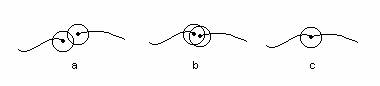 In cele ce urmeaza vom aborda cateva dintre erorile care apar in procesul de digitizare. Cand avem de digitizat o linie mai lunga de 5 cm se recomanda ca aceasta sa fie compusa din doua arce; cu alte cuvinte sa introducem un nod suplimentar. Inchiderea unui arc urmata imediat de deschiderea altuia (si care se doreste a fi o continuare a primului) implica introducerea unui nod de start pentru urmatorul arc, care de fapt trebuie sa coincida cu nodul final al arcului precedent. Aceasta situatie, precum si altele asemanatoare conduc la introducerea unei notiuni, numita Snap Node Tolerance, care sa permita contopirea celor doua noduri, fapt stiut din cele de mai sus ca, nu putem localiza la doi timpi diferiti exact acelasi punct. Snap Node Tolerance este o masura a erorii, care este egala cu o valoare ce reprezinta raza cercului in interiorul caruia oricare doua noduri digitizate vor reprezenta acelasi nod (figura 4). Sau daca vreti, distanta din jurul unui nod pentru care orice alt nod digitizat va coincide cu acesta. Trebuie sa facem un comenatriu privitor la modul in care se contopesc nodurile. Unele produse soft cer ca, pentru contopirea a doua noduri, cercurile a caror raza este egala cu Snap Node Tolerance doar sa se intersecteze (figura 49 a), iar altele cer ca cele doua noduri sa cada in interiorul celor doua cercuri (figura 4 b