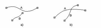 O ultima situatie pe care o amintim este cea infatisata in figura 32 a. Se observa o apropiere exagerata a arcelor A si B. Aceasta poate sa apara dintr-o gresala de digitizare sau nu. Pentru a elimina o situatie in care un arc este, practic, dublat s-a introdus un nou concept numit Fuzzy Tolerance, care reprezinta distanta minima ce separa doua arce. Daca distanta dintre arce este mai mica decat cea precizata in Fuzzy Tolerance, arcele A si B se vor contopi si vom avea situatia din figura 7 b. In caz contrar, va ramane configuratia din figura 7 a.