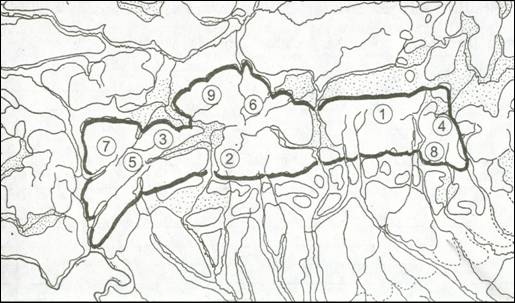 VI.Identificati numele masivelor montane, marcate pe harta cu litere de la 1 la 8.