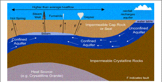 Aceste surse se bazeaza pe circulatia apelor meteorice (de suprafata) care se infiltreaza in scoarta Pamantului pana la adancimi cuprinse in intervalul 100 m - 4,5 km (vezi Figura 2). Circulatia este asigurata in mod natural pe baza diferentei dintre densitatea apei reci, respectiv a apei fierbinti sau a vaporilor de apa.
