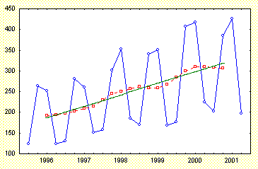 Datele privind evolutia trimestriala a productiei de bere din tara noastra (zeci mii hl) in perioada 1996-2001 sunt indicate in tabelul urmator: