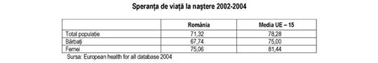 Analizele comparative cu celelalte tari europene privind speranta de viata situeaza constant Romania pe ultimele locuri, cu mentiunea ca si ritmul de crestere al sperantei de viata este nesatisfacator. Spre exemplu, cresterea sperantei de viata la femei in perioada 19701998 a fost in Romania de 3 ani, in timp ce in UE aceasta crestere a fost de aproximativ 6 ani. Speranta de viata este un indicator sintetic complex influentat nu numai de calitatea serviciilor medicale, ci si de ceilalti determinanti ai starii de sanatate.