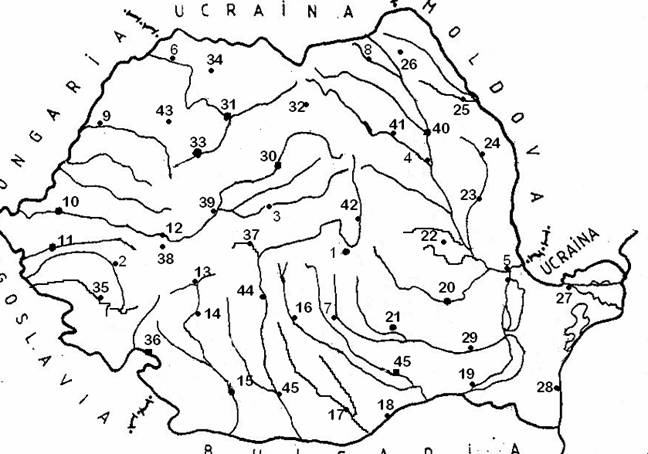 Identificati pe harta de mai jos orasele notate cu numere de la 1 la 44