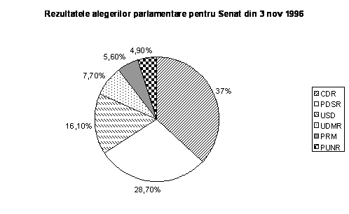 Din Anuarul Statistic al Romaniei din anul 2000 am extras seria care urmeaza, redand distributia voturilor electoratului pentru Senat (dupa redistribuire) la alegerile din 3 noiembrie 1996: