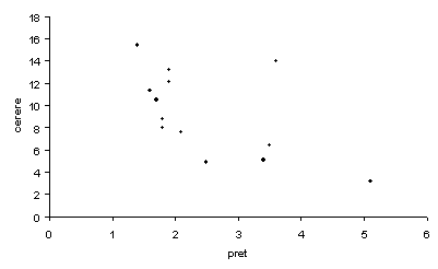 Un produs a fost lansat simultan pe 13 piete. Pe aceste piete, produsul a fost propus la preturi diferite (P), veniturile consumatorilor (V) fiind si ele diferite. Pentru fiecare piata s-a inregistrat un anumit nivel al cererii (C), rezultatele fiind sintetizate in tabelul urmator: