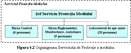 Serviciul de protectie a mediului este condus de un sef de serviciu si este alcatuit din doua birouri: