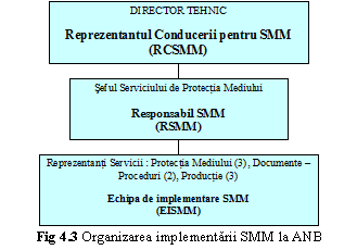 Schema de organizare a construirii si implementarii sistemului de management de mediu (stabilita printr-o decizie a top-managementului ANB) este prezentata mai jos.