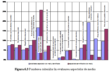 In figura 6.3 sunt prezentate comparativ ponderile criteriilor in evaluarea aspectelor de mediu pentru totalitatea aspectelor de mediu identificate si pentru aspectele semnificative.