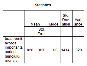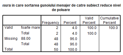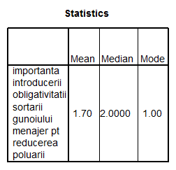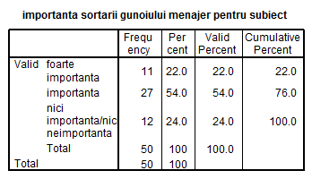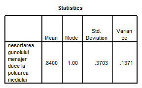 1. In ce masura populatia brasoveana considera importanta sortarea gunoiului menajer 2. Care este atitudinea brasovenilor fata de poluarea datorata gunoaielor menajere? |
