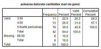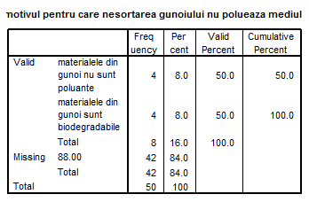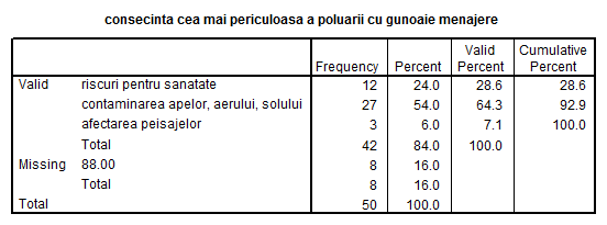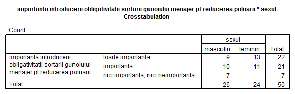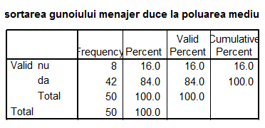 H1: Mai mult de 60% din populatia Brasovului e constienta de efectele poluarii datorate cantitatilor mari de gunoi menajer.
