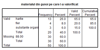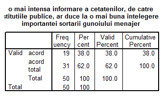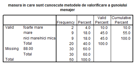 1. In ce masura se implica brasovenii in activitatea de sortare a gunoiului menajer? 2.Valorifica brasovenii gunoiul menajer? |